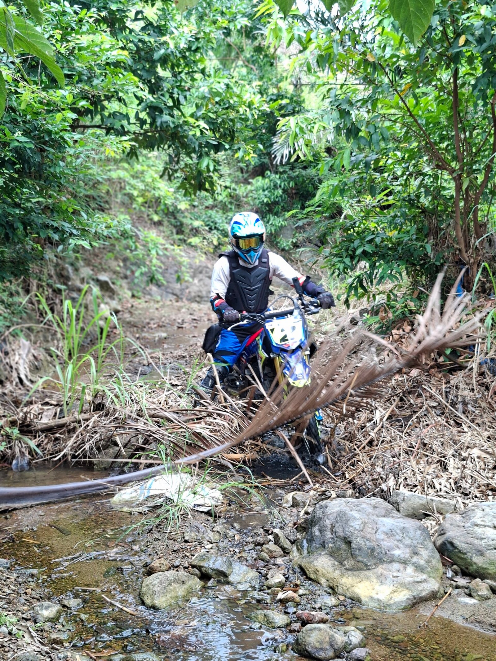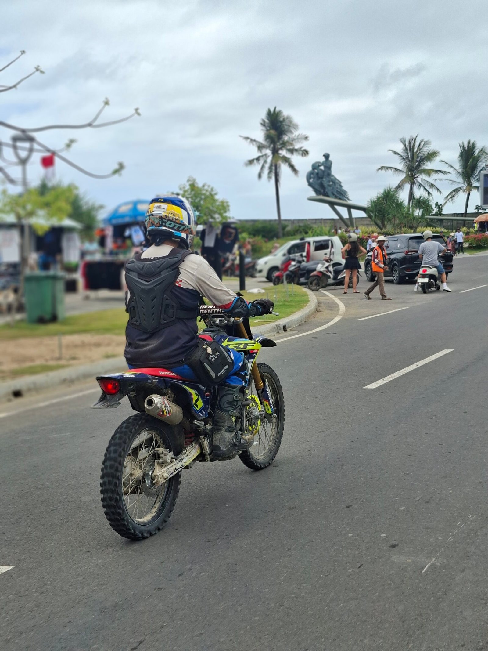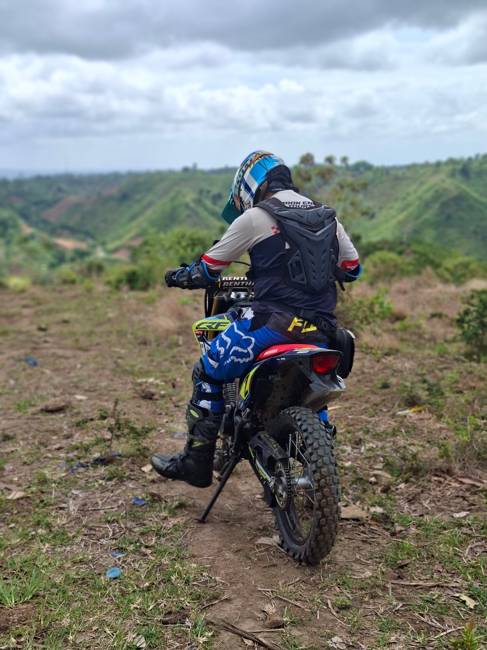 With the formalities complete, it was time to hit the trails. The Gunung Tunak region is renowned for its dramatic landscapes—rolling hills, dense forests, and breathtaking coastal views. The CRF 150 dirt bike roared to life, and Luo, equipped with full gear, set off into the wild.