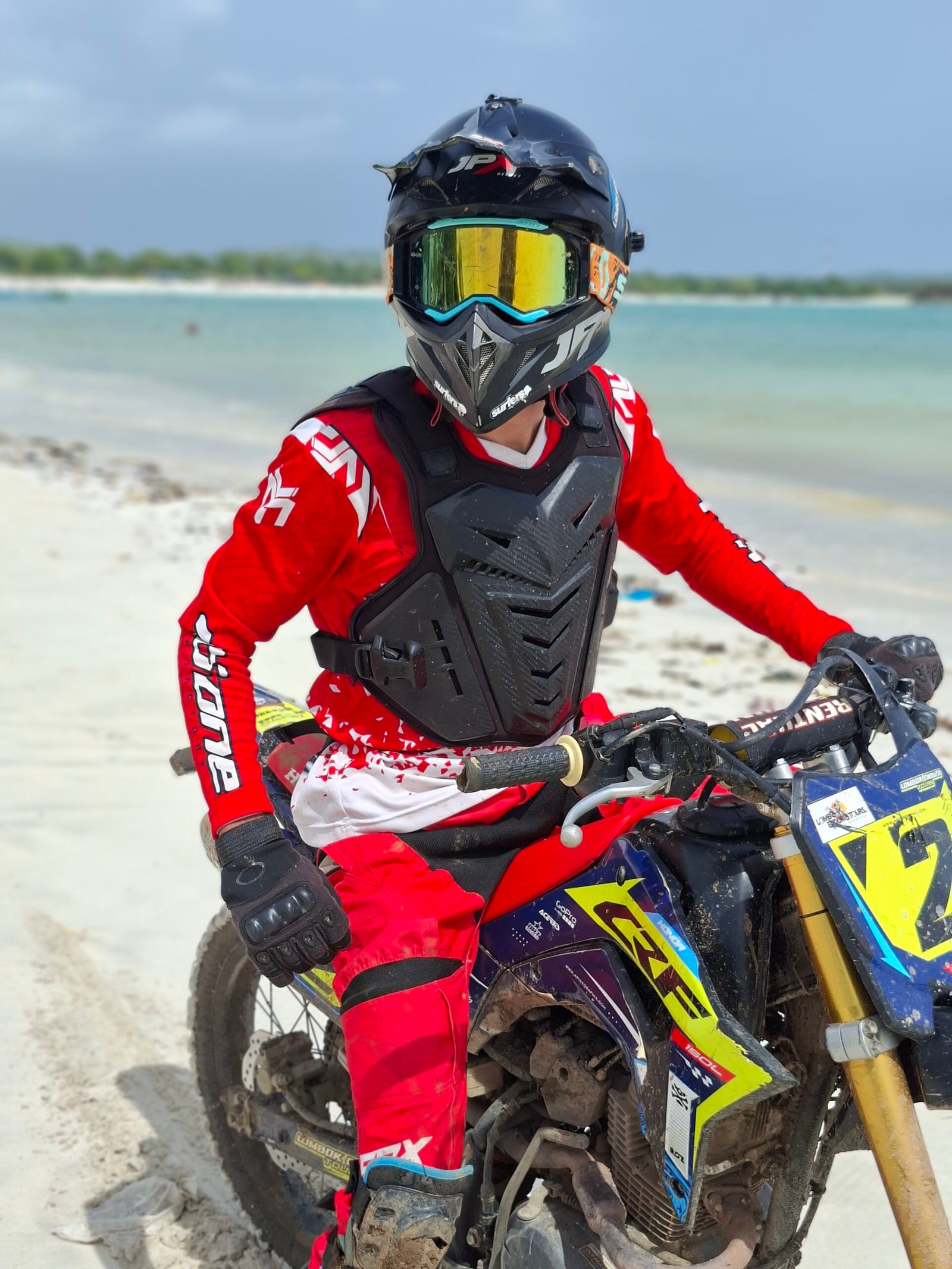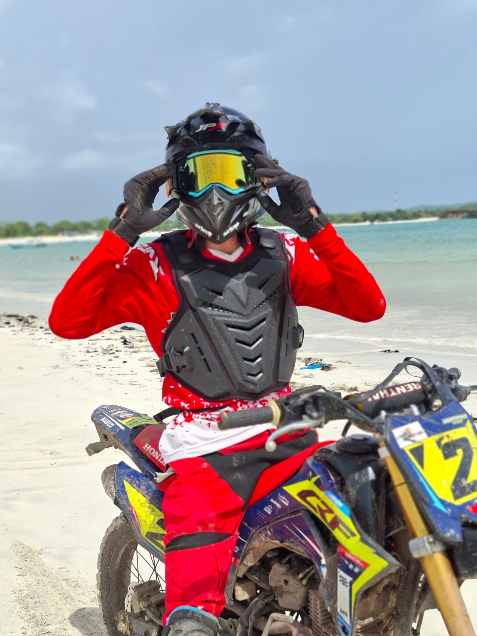 Arriving at the basecamp near Kuta Indah Hotel, Maarten was greeted by the team and fitted with his gear. The anticipation was electric as he prepared to set off on the CRF 150 dirt bike, ready to explore the trails of Kuta Lombok.